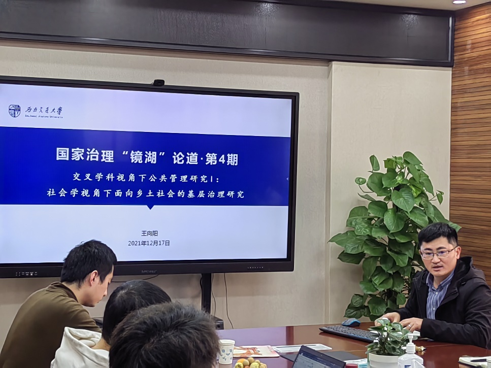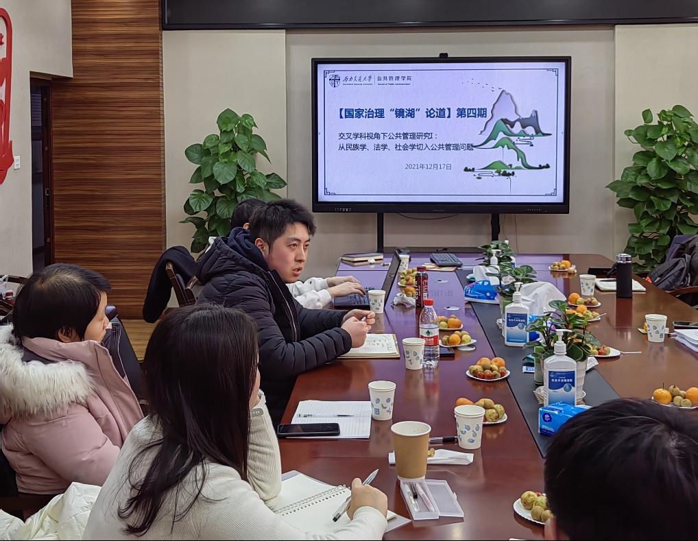 通讯员(张媛媛、许静、王路昊)2021年12月16日下午2:30,在学院01212会议室如期举行了【国家治理“镜湖”论道】第4期学术沙龙活动。公共管理作为新兴交叉学科,其相关问题受到了社会学、政治学、经济学、法学等多个学科的关注。对此,本期邀请了王浩宇、张敖、王向阳三位本学院的优秀青年学者进行了交流和对谈,分享他们在交叉学科视角下进行公共管理研究时的宝贵经验与体会。我院多个学科的师生齐聚于此,共同就本次主题进行了讨论和交流。