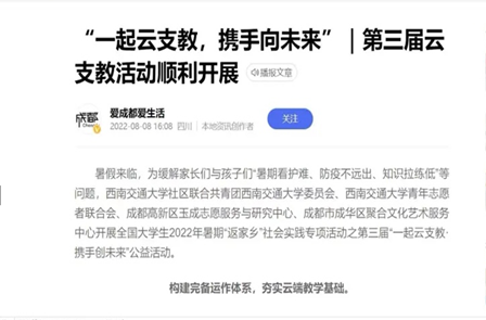 开展全国大学生2022暑期“返家乡社会实践”第三届云支教活动