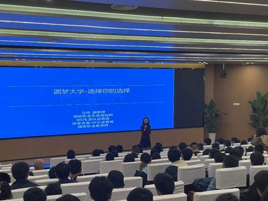 下午2点,在犀浦校区一号报告厅内,网络学院党委副书记马琼副教授为大家带来了一堂精彩纷呈的职业生涯规划课程。从高中学生的困惑入手,马老师向同学们讲述了职业生涯规划的可能性与必要性,引发深思。通过一则短视频,马老师引入“潜能公式”的应用,并从目标确定、潜能激发、化解外界干扰三个角度为同学们进行了细致讲解。现场氛围轻松有趣,同学们受益匪浅。互动环节,同学们踊跃参与,积极发言,针对同学提出的“高考后报考学校时应该更注重地域还是专业”这一问题,马琼老师从个人兴趣、未来发展等多角度进行了耐心讲解。