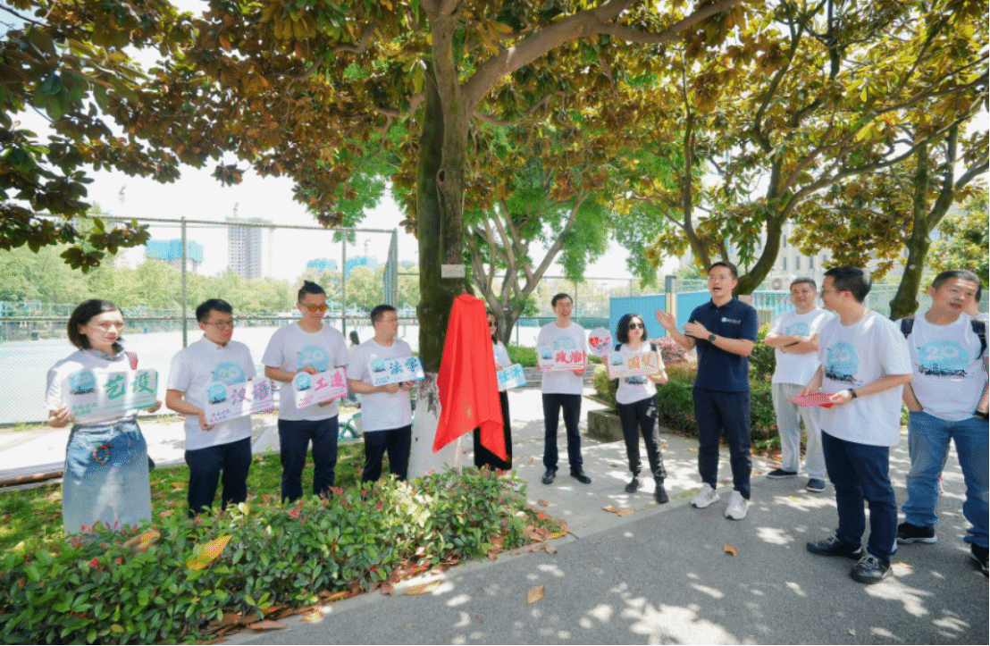5月4日下午14:00,各位校友参加2000级树木冠名认捐仪式,学校合作发展处阮波副处长出席认捐仪式。校友们冠一方铭牌于碧树,留下的翠绿将代替校友们见证交大的蓬勃发展。