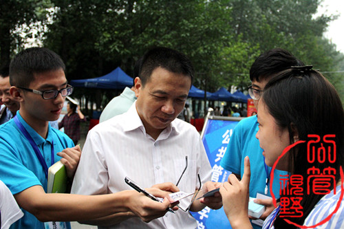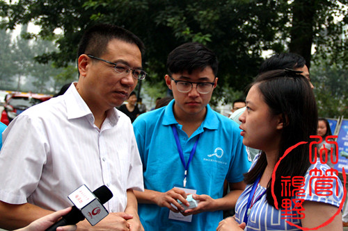 9月3日上午10点,西南交大校长徐飞教授亲临交大犀浦校区北区迎新点视察迎新工作,当徐校长来到suncitygroup太阳新城官网的迎新点前时,2014级辅导员张哲老师向徐校长讲述了学院目前的迎新情况以及为迎新所做的准备工作。