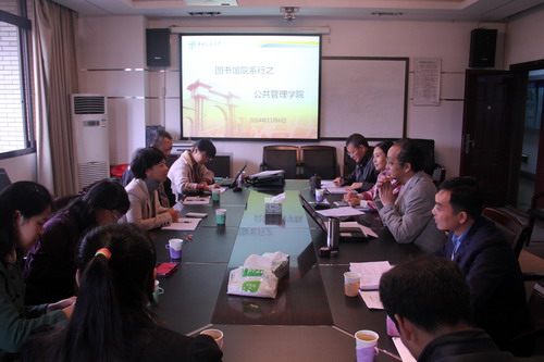 在座谈会中,图书馆刘云老师首先对我院师生科研论文、著作发表、图书借阅等情况进行了多视角的统计和分析;随后,李杰副院长结合这一分析报告,指出我院在教师科研工作统计效率提升、学院图书资料室书籍增购及统一入库等方面需要得到学校图书馆的大力支持;王永杰书记结合目前师生文献阅读和使用的实际情况,建议学校图书馆将更多资源投入和配置在文献资料电子数据库和文献数据挖掘分析工具的引入和应用等方面;窦祥胜教授则就Scopus的应用、学术搜索引擎的选择、国内外著名高校电子数据库镜像工作等问题进行了咨询和建议;雷国胜副教授根据校外、国外图书情报工作发展最新动态,从我校师生图书借阅与使用的数量和质量提升、纸质图书续借制度改进、外文数据库扩充、科研论文在线撰写及文献处理辅助工具平台搭建、数据分析处理工具共享服务平台建设、国际统计资料数据库引入等方面提出了许多意见和建议。