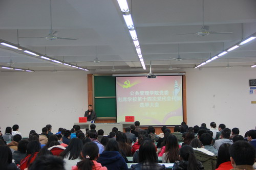王永杰同志首先向大会报告了党代表候选人推荐产生情况。suncitygroup太阳新城官网共有党支部18个,党员总数300人,其中正式党员243人。关于党代表候选人酝酿提名,我院各支部按照2014年11月10日学校党委会议精神和11日学院党委扩大会议的要求,召开了各支部党员大会进行无记名提名酝酿。2014年11月14日,学院党委召开党委扩大会议,根据分配的代表名额、构成要求和代表条件,严格按照民主程序,充分酝酿讨论,根据多数党员的意见,按多于代表名额20%的比例提出代表候选人预备人选名单,并将代表候选人预备人选登记表报十四次党代会大会筹备工作领导小组组织组,经同意后,召开这次全体党员大会进行选举。