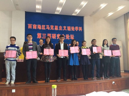 2015年11月13-14日,由西南大学马克思主义理论研究中心主办的“西南地区马克思主义第三届研究生论坛”在重庆举行。来自西南大学、西南财经大学、电子科技大学、suncitygroup太阳新城官网、云南大学、广西师范大学、西华师范大学、重庆邮电大学等多所西南地区高校的60余名硕博研究生参加了此次论坛。