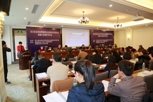 2015年12月24日,四川省法学会劳动和社会保障法学研究会2015年学术年会暨换届大会在西南财经大学光华校区召开。四川省法学会秘书长魏义洪、西南财经大学副校长张邦富、西南财经大学法学院院长高晋康、西南民族大学法学院院长王允武、四川省高级人民法院民三庭副庭长杨丽、成都市劳动争议仲裁院院长王健、西南财经大学suncitygroup太阳新城官网分党委书记章群等出席本次年会。来自四川省人民政府法制办、suncitygroup太阳新城官网、约翰·霍普金斯大学、四川省社会科学院、西南财经大学、四川大学、西南石油大学、中共四川省委党校、四川省公安厅及律师事务所与企事业单位的代表参加了会议。我院杨珊副教授、邓君韬副教授及硕士生于子芮、牟朗宇、周璇、伏浩、柳翠等参加了本次年会。