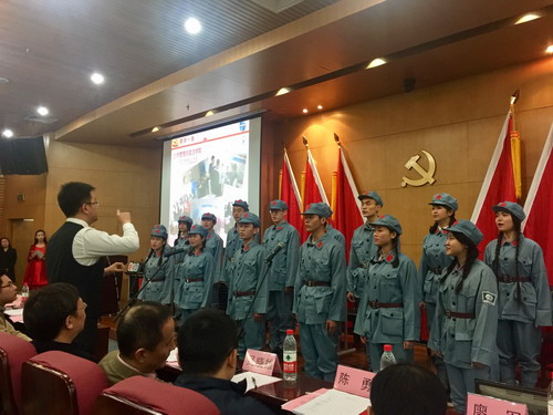 当晚的决赛中,我院参赛队伍经过党章党规知识问答、红色经典电影赏析、热血红歌竞演等五个环节,从六支参赛队伍中脱颖而出。由我院研究生党员组成的红歌合唱团以一曲高亢嘹亮的《太行山上》,深深感染了在座观众,为当晚的赛事增色不少。在抢答环节,我院参赛队员凭借敏捷的反应力和深厚的知识功底,连续三次抢到答题权,以“零失误”的绝佳表现赢得了全场观众和评委老师一致喝彩。最后,在扣人心弦的自选分值问答环节,我院参赛队员经过冷静分析,充分衡量得失后,果断选取最合适的6分题进行作答,彻底消灭比赛悬念,最终以99分的绝对优势,摘得决赛桂冠。