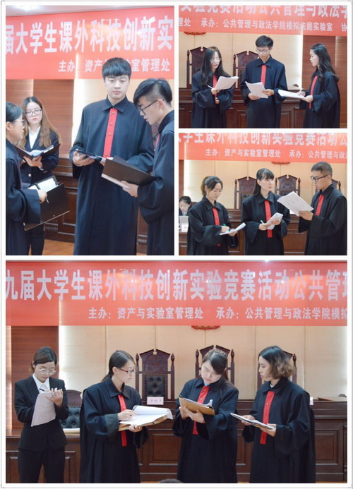 2017年6月10日下午1:30,由学校资产与实验室管理处主办,公共管理与政法学院模拟法庭实验室承办,学院团委协办的suncitygroup太阳新城官网第九届大学生课外科技创新实验竞赛活动“模拟法庭竞赛”决赛在X5403模拟法庭实验室拉开帷幕。