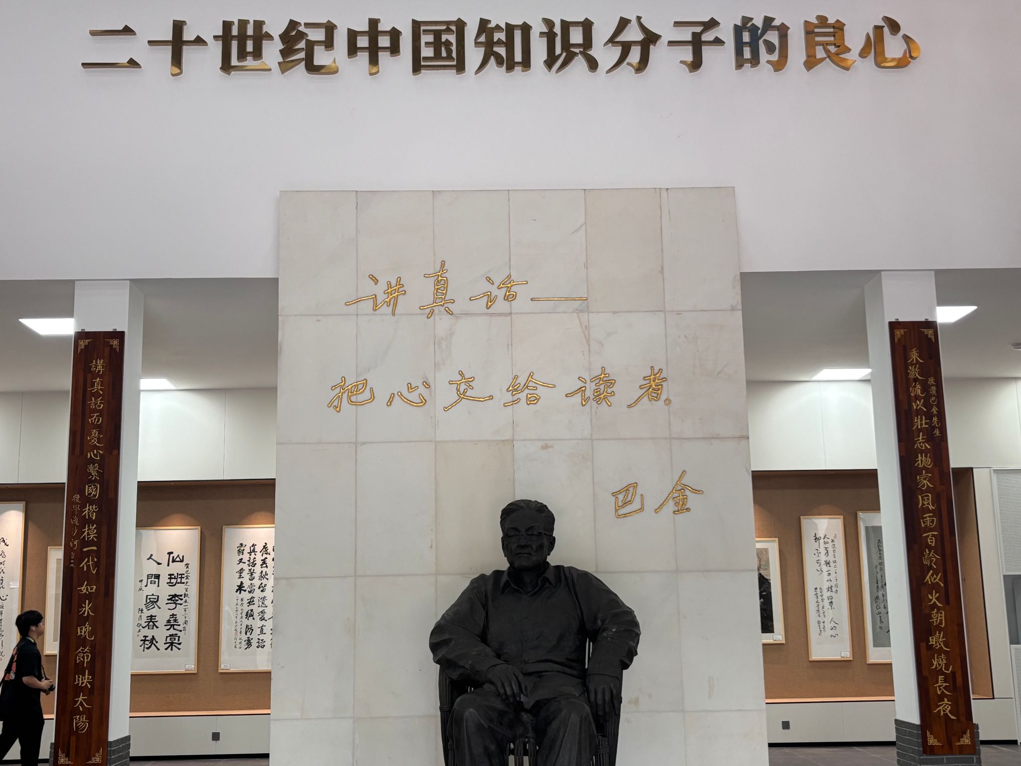 上午9时,实习队伍抵达坐落于成都东郊的巴金文学馆。这座以“人民作家”巴金命名的文化场馆,以手稿、影像、实物等珍贵藏品,全景式呈现了巴金先生“把心交给读者”的文学人生。