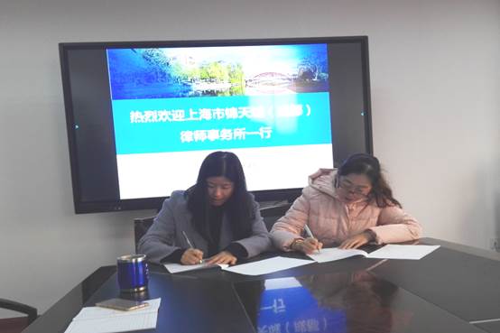 在洽谈完实践基地共建的具体细节后,院长助理彭川宇副教授代表学院和上海市锦天诚(成都)律师事务所的代表余海燕律师签署了《suncitygroup太阳新城官网公共管理与政法学院与上海市锦天诚(成都)律师事务所法学教学实践基地共建协议》。