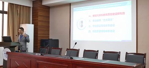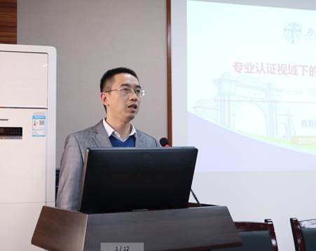 为加强一流本科专业建设,提升本科教学质量,学校将“完善教学质量保障体系”列为2020年工作要点,明确要求“加强课程教学过程管理和质量监控,推进以‘质’为导向的奖励绩效分配改革,进一步完善校院两级本科教学质量保障体系。”为了让更多的老师了解我校教学质量保障相关的工作,推进学院的一流本科专业建设,特邀请学校教务处康锐副处长一行到我院做《专业认证视域下的质量保障体系建设---以“学”为中心的院级质量保障建设交流》主题宣讲。
