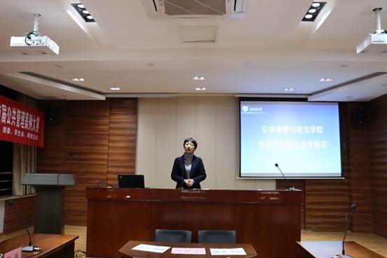 大赛开幕式中,公共管理与政法学院党委书记高凡教授、冯会会老师、电子政务实验室赵巍老师作为嘉宾莅临现场,公共管理与政法学院院长助理彭川宇副教授、刘凤教授、唐志红副教授、韩文丽副教授、杨建副教授以及严敏老师担任本次大赛评委。主持人介绍后,高书记上台致辞,她首先表达了对八支晋级复赛队伍的祝贺,并在发言中对学生提出知行合一、理论结合实际、勇于发现和探索的期待。同时,高书记也表示,希望同学们的团结精神能在本次大赛中增强,欢迎学校其他学院的同学积极参与其中。随着主持人话音落下,比赛正式开始,八支队伍分别前往01417与01101会场开展比赛。
