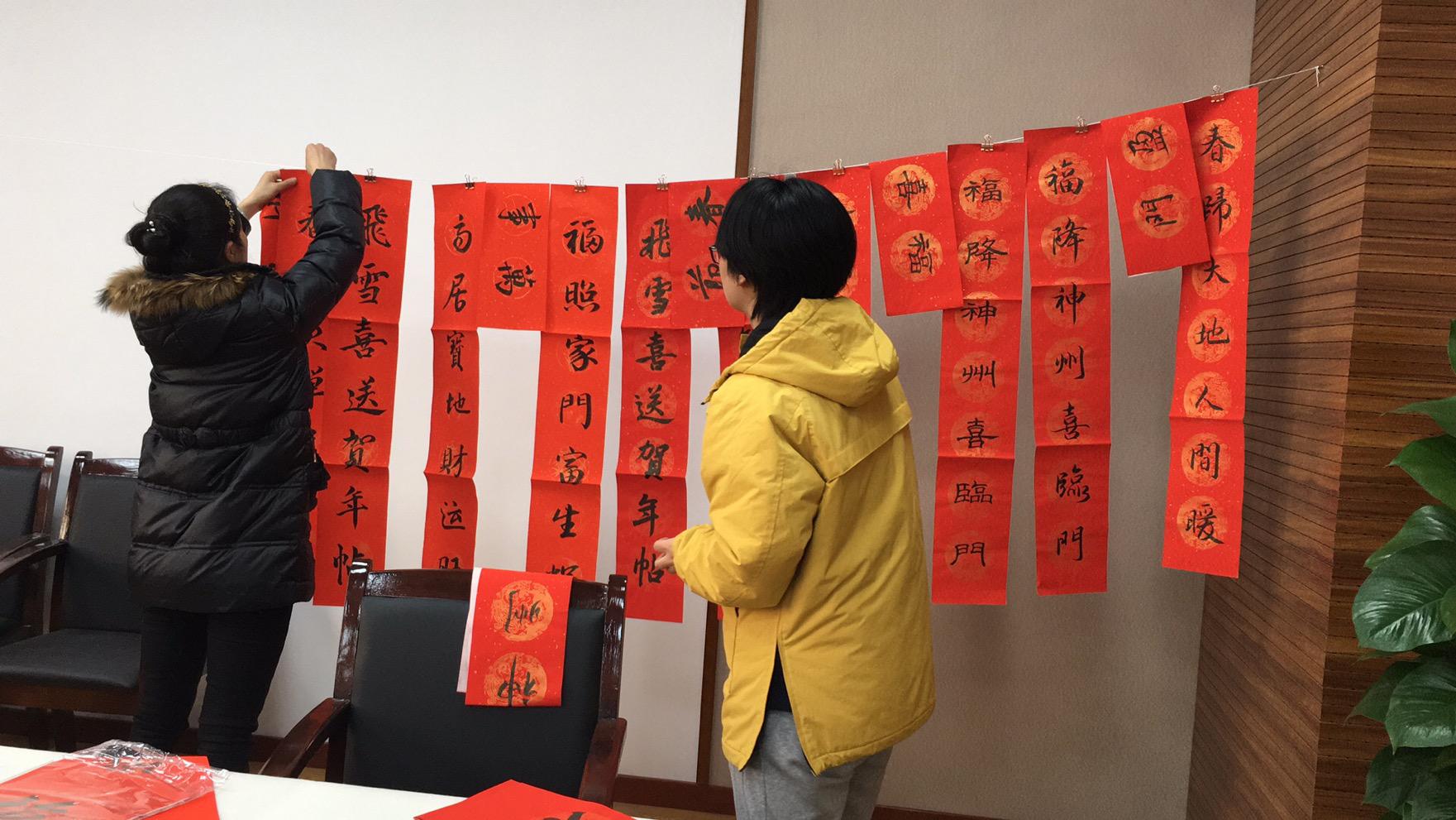 疫情防控期间,为响应国家和省市关于留在当地过节、过年的号召,学院党政工团于2021年1月21日下午邀请了书画协会的老师和同学在九里校区01216室为学院教职工写“福”字、送新春对联。
