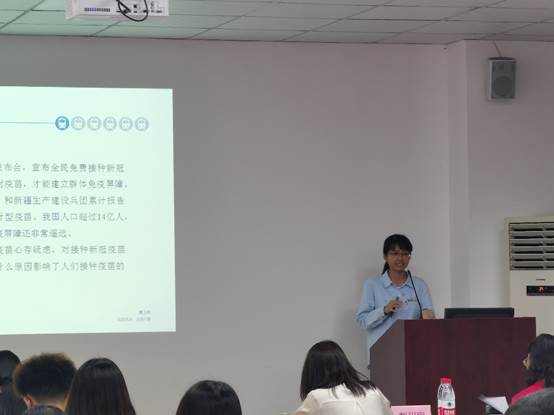 抽签顺序为1的奔赴热点第一线队率先上台答辩,他们采用简单随机抽样方法,抽取suncitygroup太阳新城官网部分本科生和研究生进行问卷调查,采用因子分析、主成分分析和卡方检验的方法分析影响其接种意愿和前后意愿差异的因素。通过分析得到suncitygroup太阳新城官网学生对新冠疫苗认知度较好、接种意愿较强,但目前实现全民接种还有一定距离,建议持续加大新冠疫苗科普力度,针对不同特征人群开展个性化普及,并加强对疫苗的监督与规范管理。