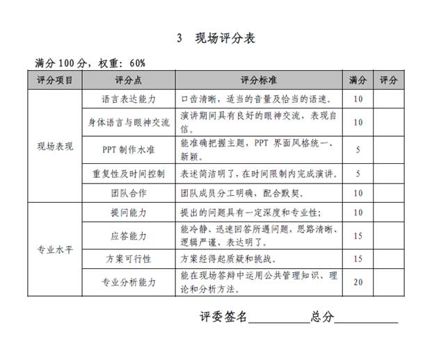 进入决赛阶段的两支参赛队伍,根据组委会提供的同一案例,在规定时间内完成案例分析,并进行现场展示和问辩。评委对每支队伍的案例分析水平和现场问辩表现分别进行打分,两者加权加总后确定最终名次及奖项归属。