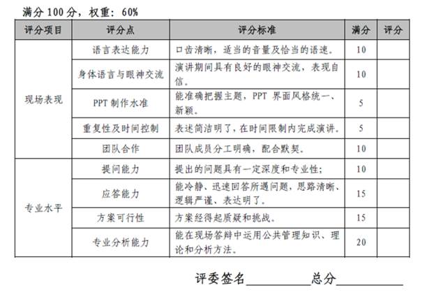 进入决赛阶段的两支参赛队伍,根据组委会提供的同一案例,在规定时间内完成案例分析,并进行现场展示和问辩。评委对每支队伍的案例分析水平和现场问辩表现分别进行打分,两者加权加总后确定最终名次及奖项归属。