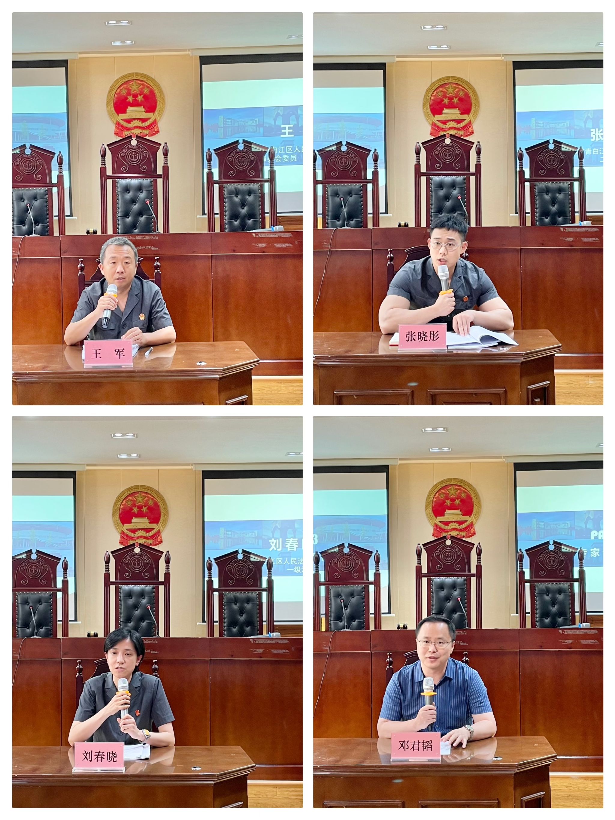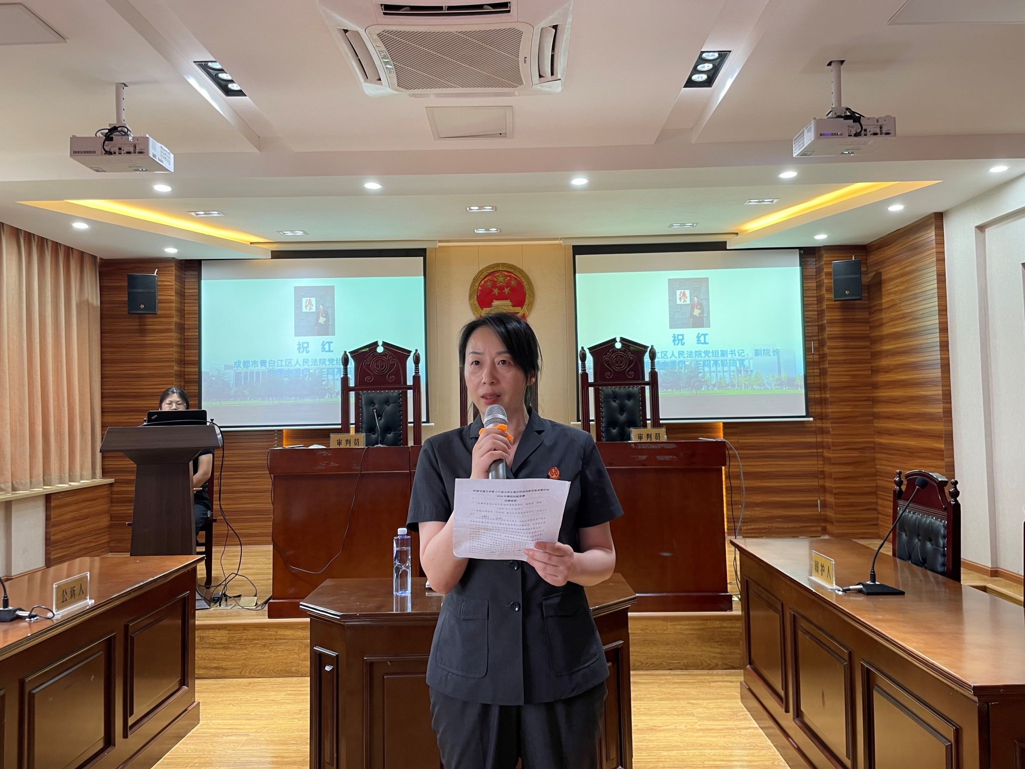 决赛开始前,祝院长为本次活动致辞,她强调了模拟法庭竞赛活动的开展对学生法学学习的重要性以及对“院校合作”培育卓越法律人才的大力支持。祝院长希望通过法院对经典案例的改编和复盘,以模拟法庭竞赛活动的形式让同学们将所学的法律知识运用于实践,提升同学们的创新实践素养和综合运用法律知识的能力,从而不断优化整合法治资源和教育资源,加快卓越法律人才培养的步伐。随后,雷斌副院长对青白江区人民法院对我校模拟法庭竞赛的大力支持表示了衷心的感谢,并为参赛选手们加油鼓劲,希望同学们在赛场上敢于表达,勤于表达,善于表达,突破自我,取得佳绩!