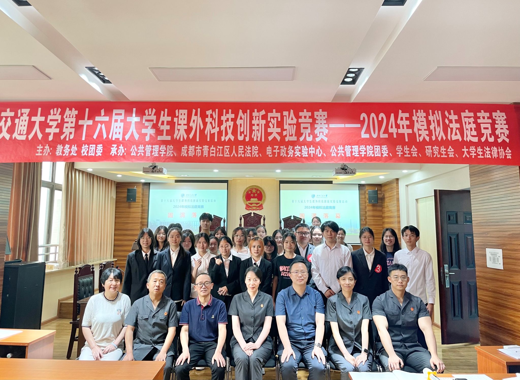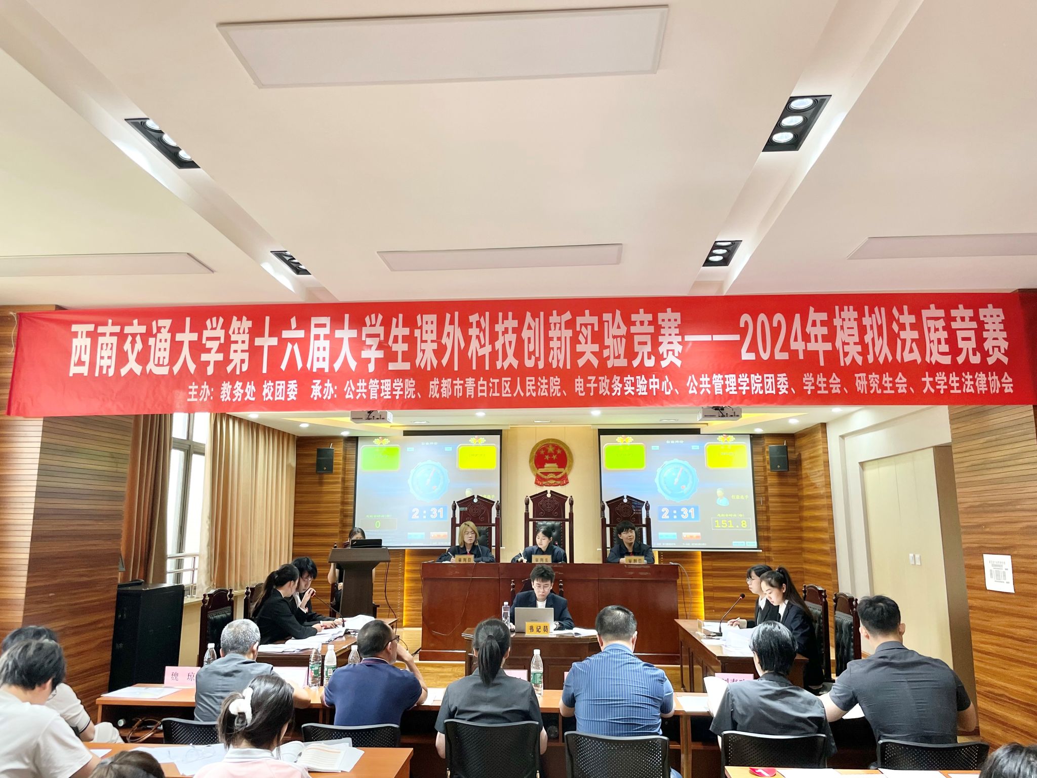 由suncitygroup太阳新城官网教务处、校团委主办,suncitygroup太阳新城官网、成都市青白江区人民法院、suncitygroup太阳新城官网团委、学生会、大学生法律协会承办的suncitygroup太阳新城官网第十六届大学生课外科技创新实验竞赛2024年模拟法庭竞赛在4月初拉开帷幕,经过初赛对16支参赛团队提交的司法文书进行匿名评审以及复赛对晋级的八支参赛团队言辞辩论评审,A、B两组分别有一支参赛团队晋级模拟法庭竞赛决赛,并于2024年5月26日下午14:00-17:00在信息楼01417模拟法庭实验室展开最后的激烈角逐。