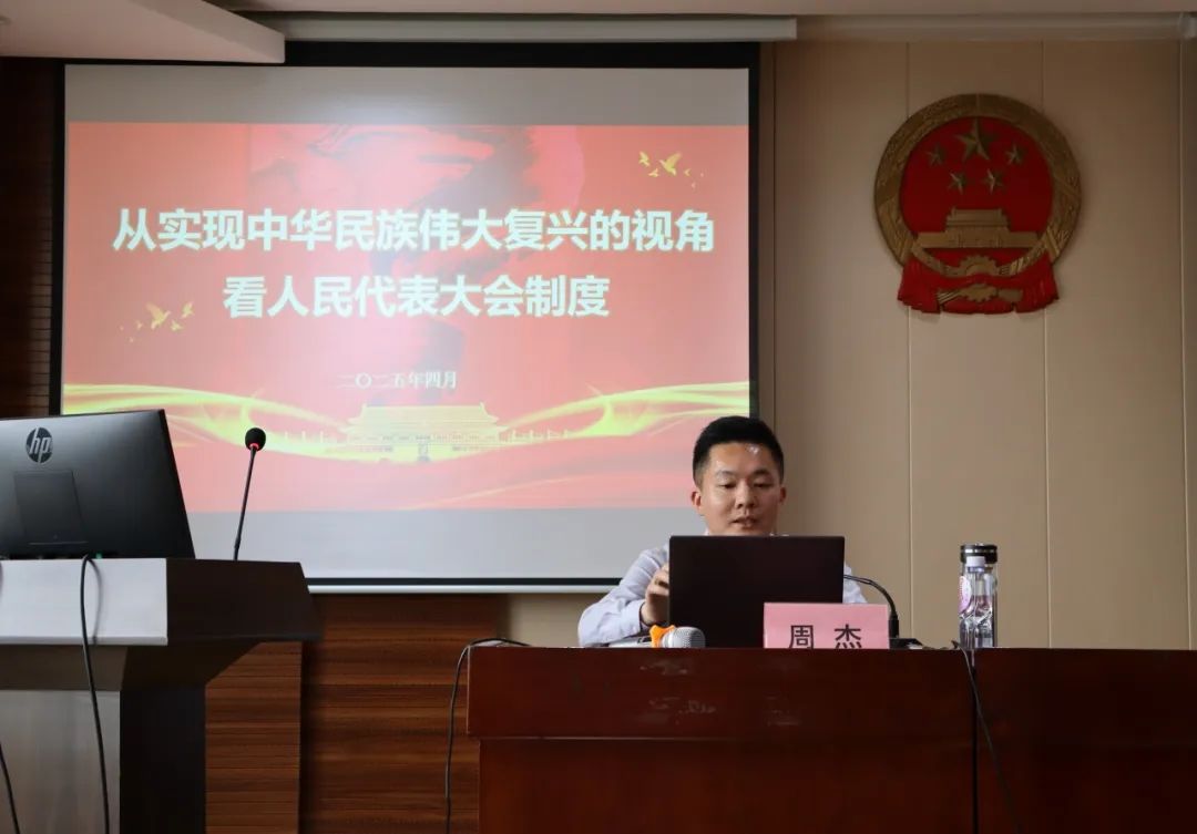 为深入学习贯彻习近平新时代中国特色社会主义思想,增进青年学生对我国政治制度的认同,2025年4月10日下午,suncitygroup太阳新城官网特邀四川省人大研究室副处级干部周杰,在01417教室开展题为《从实现中华民族伟大复兴的视角看人民代表大会制度》的专题讲座。