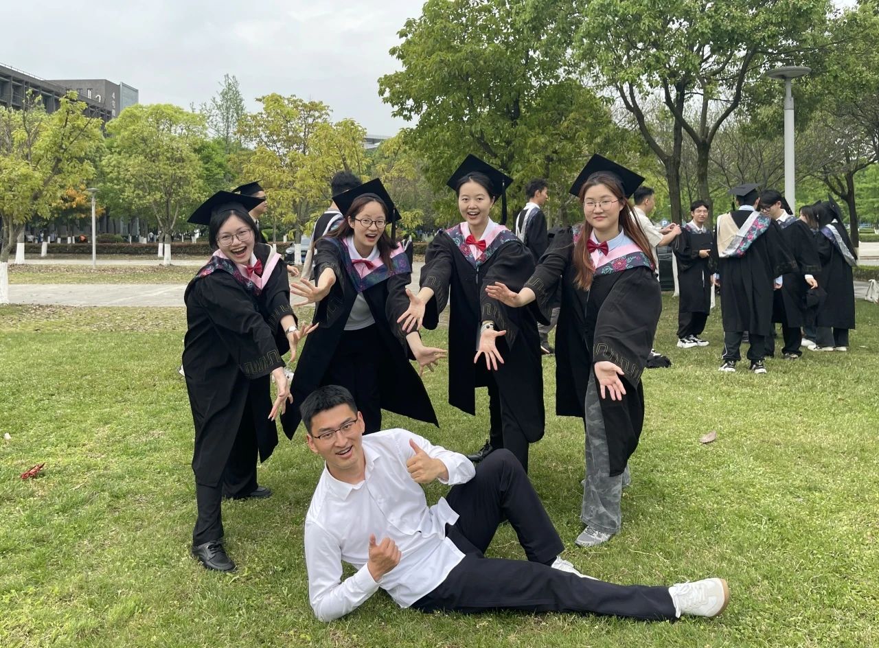 四月的风轻柔地掠过校园,树影婆娑,阳光明亮。穿上学士服的那一刻,我们才真正意识到,分别已悄然临近。草地上、林荫下、教学楼前——我们将四年的故事浓缩进一张张合影中。今天,我们站在人生的岔路口,轻声说出那句“再见”。