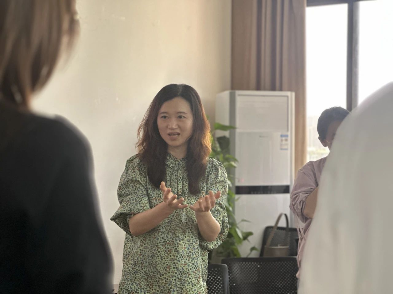 为了进一步打开同学们的接纳度,冯老师安排了趣味自我介绍环节,鼓励大家以最自然的状态表达自己。冯老师提到:“大家要做生活中的演员,专注觉知周围的一切,形成一个包容的状态,更好地接纳自己和他人。”在冯老师的带领下,同学们逐渐放松下来,纷纷沉浸其中,互相分享感受。