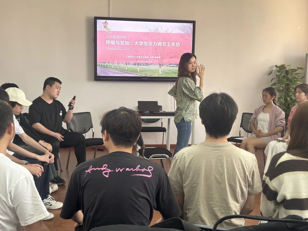 在大学校园里,学业的繁重、社交的复杂、未来的迷茫,让诸多同学深感压力在肩如影随形。这些压力正悄然侵蚀着大家的身心健康,不少同学陷入焦虑、失眠的困境。为帮助同学们缓解压力,释放自我,suncitygroup太阳新城官网于4月24日下午4:00在0号教学楼01108教室开展“呼吸与觉知:大学生压力调节工作坊”活动。心理研究与咨询中心冯缙老师带领同学们进行了一场沉浸式的身心放松之旅。