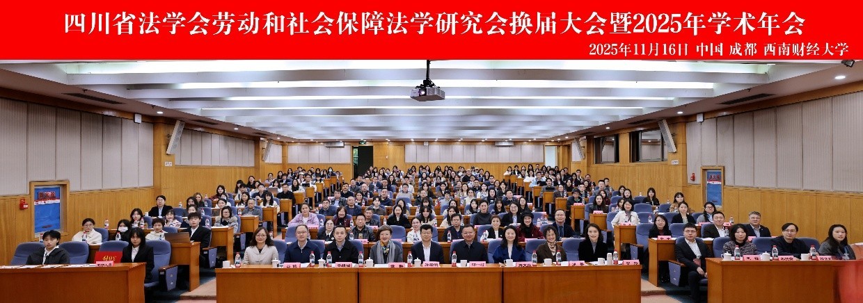 2025年11月16日,由四川省法学会劳动和社会保障法学研究会主办,西南财经大学suncitygroup太阳新城官网、法学院承办,我院及四川大学法学院、西南民族大学法学院、西华大学法学院(知识产权学院)、成都理工大学法学院、四川省社会科学院法学所、四川省法律援助中心、《四川劳动保障》杂志社、上海格联(成都)律师事务所等单位共同协办的四川省法学会劳动和社会保障法学研究会换届大会暨2025学术年会在西南财经大学光华校区文渊园学术报告厅举行。中国社会法学研究会副会长王兴全,四川省法学会党组成员、秘书长邓一村,西南财经大学党委副书记、纪委书记孙殿明作开幕致辞。我院邓君韬副教授,法律硕士研究生邓邦成、杨博宇、苟越、程歆蕊,法学硕士研究生刘星宇、张腾宇应邀参会。