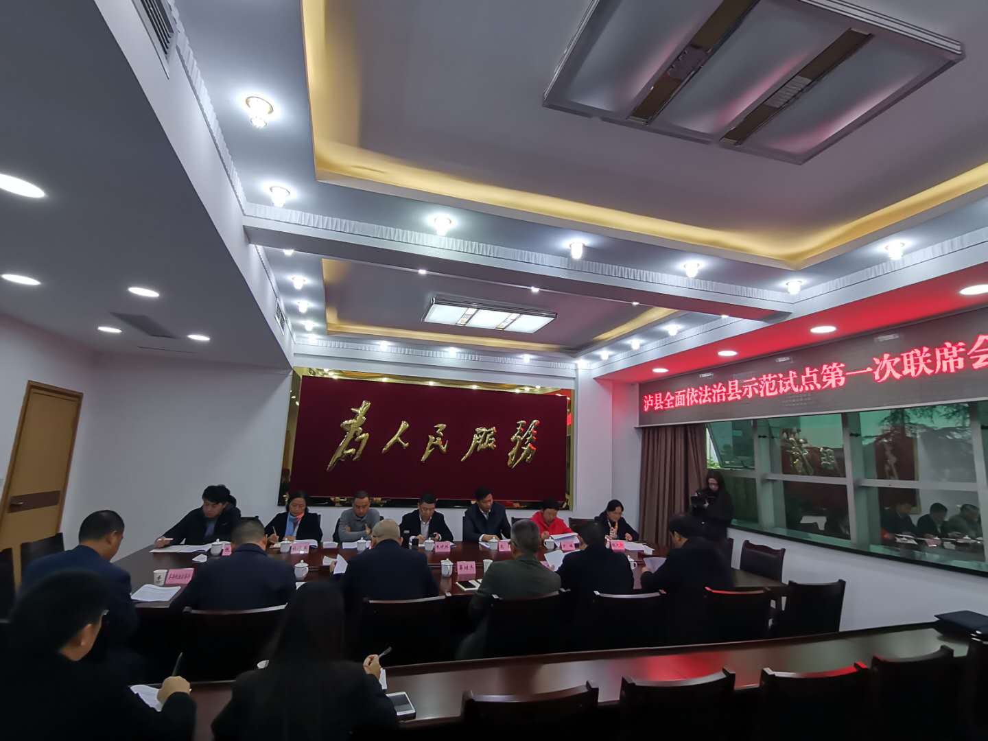 在泸县全面依法治县示范试点第一次联席会上,朱晚林强调要认真学习习近平总书记关于全面依法治国的重要论述,要将两个“工作导引”与泸县实际相结合,研究制定出针对性、操作性强的实施方案,确保示范试点工作取得实效。我院教师就课题调研的工作机制、工作职责、主攻方向等问题积极讨论。
