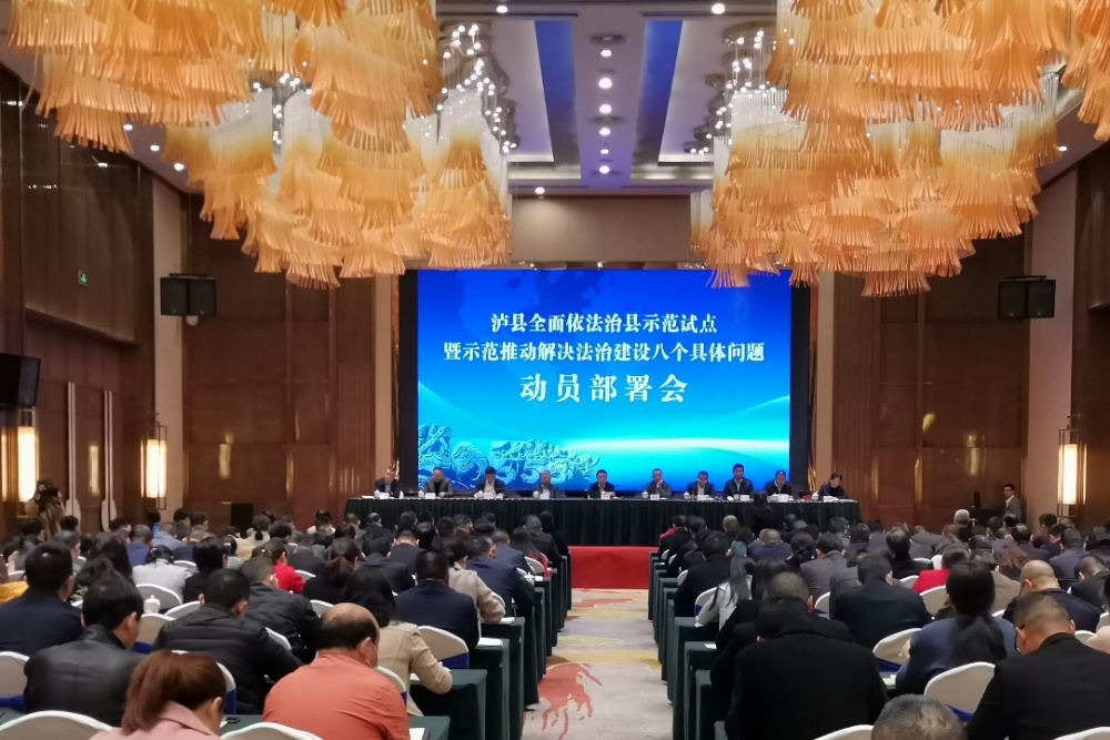 为加快建设更高水平法治四川,四川省委全面依法治省委员会印发《关于开展全面依法治县示范试点暨示范推动解决法治建设八个具体问题有关工作的通知》,决定在“四个一”(一位省级领导、一个省直机关、一所高校、一家律师事务所)模式指导下开展全省十四个县(市、区)全面依法治县示范试点。2020年10月28日-29日,由省政协牵头的全面依法治县示范试点解决法治建设八个具体问题动员部署会暨第一次联席会在泸县隆重召开,我院法学系教师陈迎新、张敖作为专家组成员受邀参会。