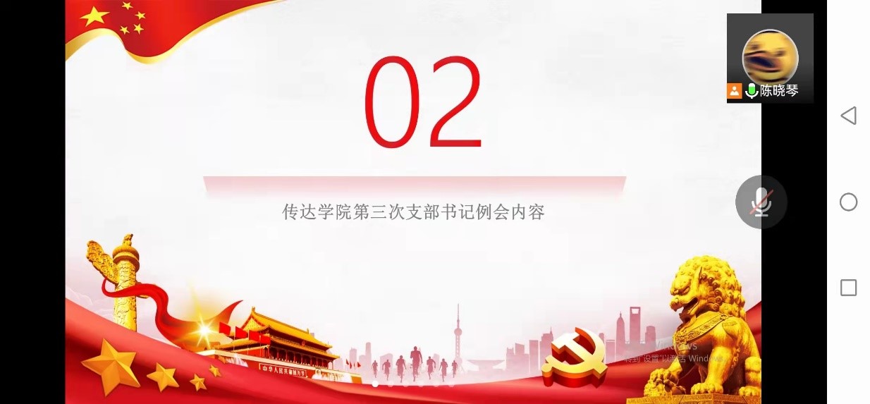 最后由党支部书记陈晓琴同志传达学院第三次支部书记例会内容。学院会议内容主要强调要深入落实党建工作,持续进行党务工作。要保证日常党员信息、党务信息和党建信息等数据的加密传播,对党支部信息泄密工作给予重视和强调,今后党支部能够扎实做好党建党务信息工作,做好保密工作自查和大检查,在细化上下功夫,在落实上做文章,保证信息传播的正确、真实。