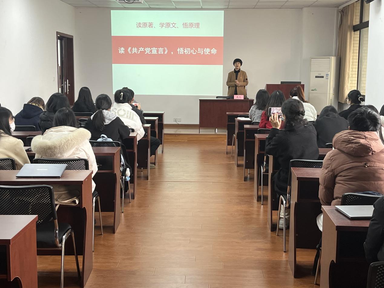 本次党员读书班主要分为两项议程。第一部分为学院党委书记高凡教授为学院2022级研究生党员开展“学习党的二十大精神——中国式现代化”专题党课。第二部分为学院党委书记高凡教授围绕《共产党宣言》开展专题理论讲授学习。