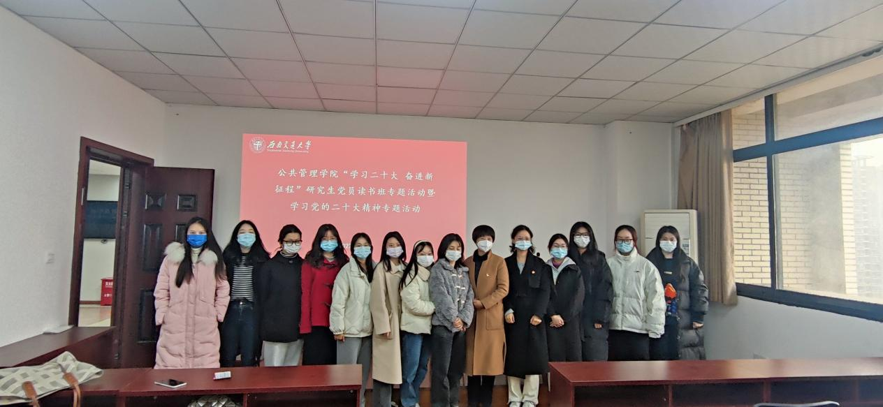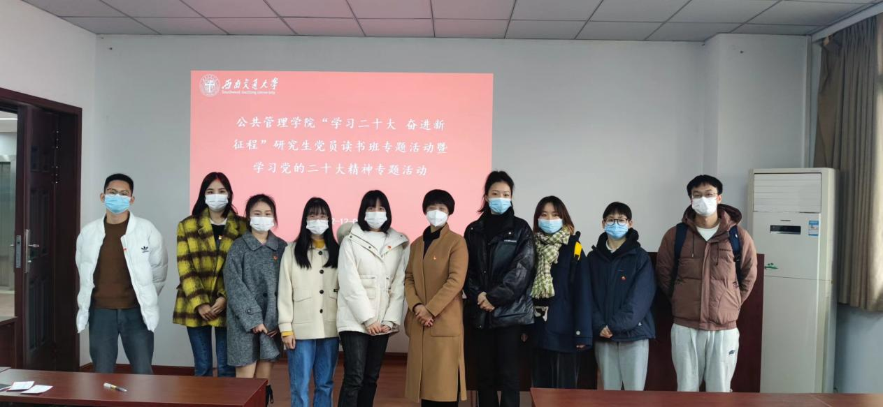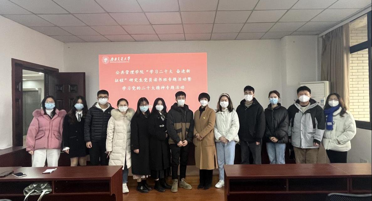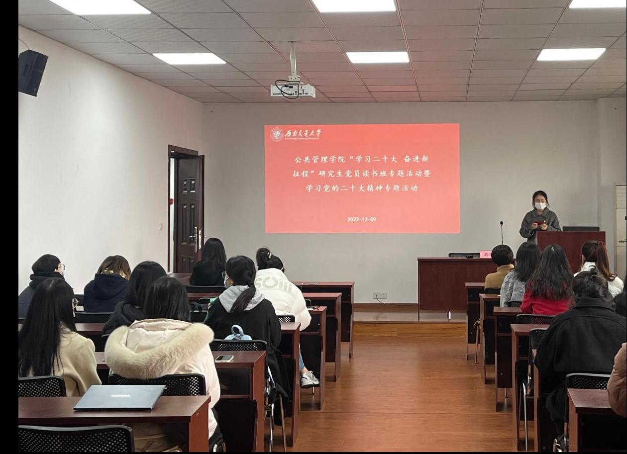 为深入学习宣传贯彻党的二十大精神,引导广大学生党员深刻认识“两个确立”的决定性意义,增强“四个意识”,坚定“四个自信”,做到“两个维护”,弘扬伟大建党精神,引导激励广大学生党员坚定理想信念,奋进新征程,建功新时代。2022年12月9日下午13:00,suncitygroup太阳新城官网在九里校区零号教学楼01105组织开展“学习二十大 奋进新征程”研究生党员读书班暨学习党的二十大精神专题活动。出席本次活动的领导嘉宾有学院党委书记高凡,学院研究生辅导员莫太林老师和赵诚然老师,学院2022级全体研究生党员参加了此次活动。