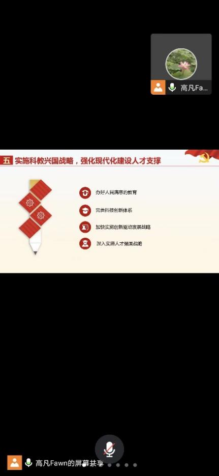 为深入学习贯彻党的二十大精神,根据学校《关于做好党的二十大精神学习培训的工作提示要求》,suncitygroup太阳新城官网教工公管系党支部和本科第二党支部于2022年12月15日下午15点50分以线上会议的方式顺利开展了有关党的二十大精神主题宣讲活动。本次宣讲活动邀请了学院党委书记高凡同志进行宣讲,教工公管系党支部和本科第二党支部全体党员参加了此次活动。