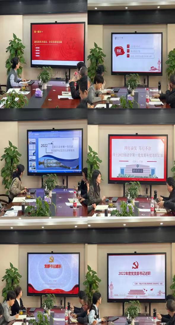 述职评议会上,学院6个教工党支部、11个学生党支部书记通过PPT现场汇报的形式,围绕个人履职尽责情况、工作特色亮点、工作思考和建议等方面进行述职,分析工作中存在的问题和不足,并提出2023年的工作思路和计划,为新一年的学院党建工作吹响了号角。本年度党支部书记述职评议考核评委由学院党委委员、系(中心)主任、综合办主任、组织员及学生代表担任,评委们对各支部工作情况进行了现场评议。