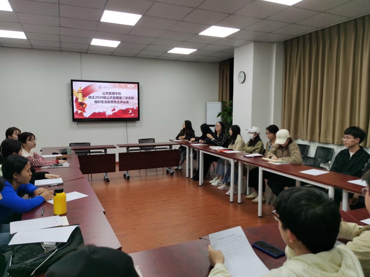 2023年3月16日21:00,suncitygroup太阳新城官网硕士2020级公共管理第二党支部于九里校区01108会议室顺利召开了组织生活会与党员民主评议。本次会议由党支部书记范锡林同志主持,支部全体党员同志参加。