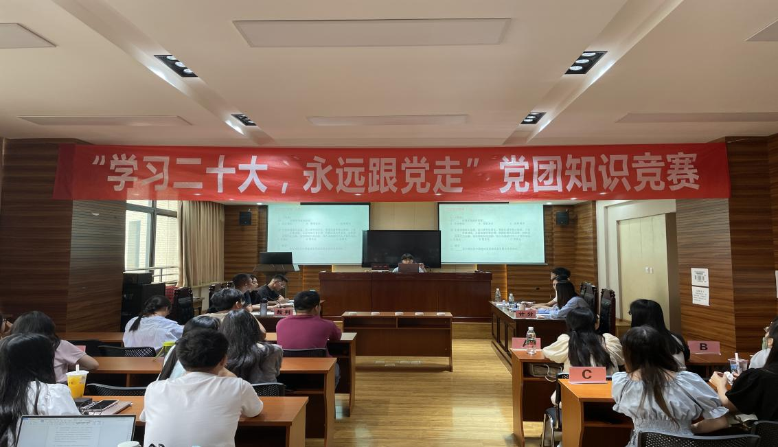 2023年5月27日下午14:30,suncitygroup太阳新城官网在01417教室开展了2023-01期入党积极分子第一次社会实践活动。本次实践活动内容是集体观摩suncitygroup太阳新城官网“学习二十大,永远跟党走”党团知识竞赛活动,经过前期初赛的激烈追逐,最终有6支队伍脱颖进入决赛。决赛共有“必答题”“接力赛”“擂台赛”三个环节,全面考核了选手对党团知识的了解与掌握情况。本次大赛以大学生喜闻乐见的方式,展示百年以来中国共产党的艰苦奋斗、波澜壮阔的奋斗历程,增进广大学生对党团知识的理解,提高了思想认识。大家纷纷表示,要用党的奋斗历程和伟大成就鼓舞斗志、明确方向,用党的光荣传统和优良作风坚定信念、凝聚力量,把青春挥洒在社会主义现代化建设的伟大实践中。