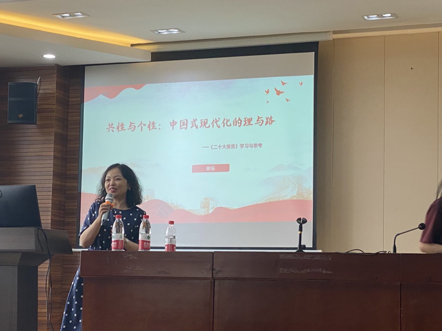 在研究生党员读书班专题活动正式开始之前,谢瑜教授先由“共性与个性”的话题引出“中国式现代化”。她指出,中国式现代化是与世界同步的,中国也一直在思考一路走来的心路历程。党的二十大报告中关于中国式现代化的表述,不断谱写马克思主义中国化时代化新篇章,是当代中国共产党人的庄严历史责任。继续推进实践基础上的理论创新,首先要把握好习近平新时代中国特色社会主义思想的世界观和方法论,坚持好、运用好、贯彻好其中的立场观点方法。从现在起,中国共产党的中心任务就是团结带领全国各族人民全面建成社会主义现代化强国,实现第二个百年奋斗目标,以中国式现代化全面推进中华民族伟大复兴。