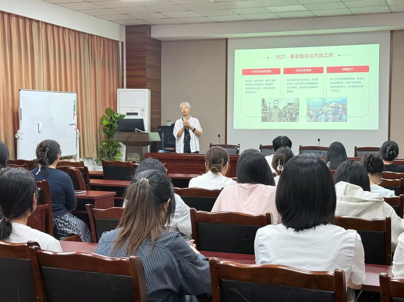 会议伊始,高书记以1927年大革命失败后的历史背景为切入点,详细讲述了毛泽东同志在革命危急关头提出“农村包围城市”战略的重大历史意义。这一战略转变充分体现了中国共产党人实事求是、勇于创新的宝贵品质,为当代学生党员提供了重要的方法论启示:在学习科研中也要勇于探索新方法、新思路,敢于创新,为解决实际问题提供新方案,进而推动社会发展。
