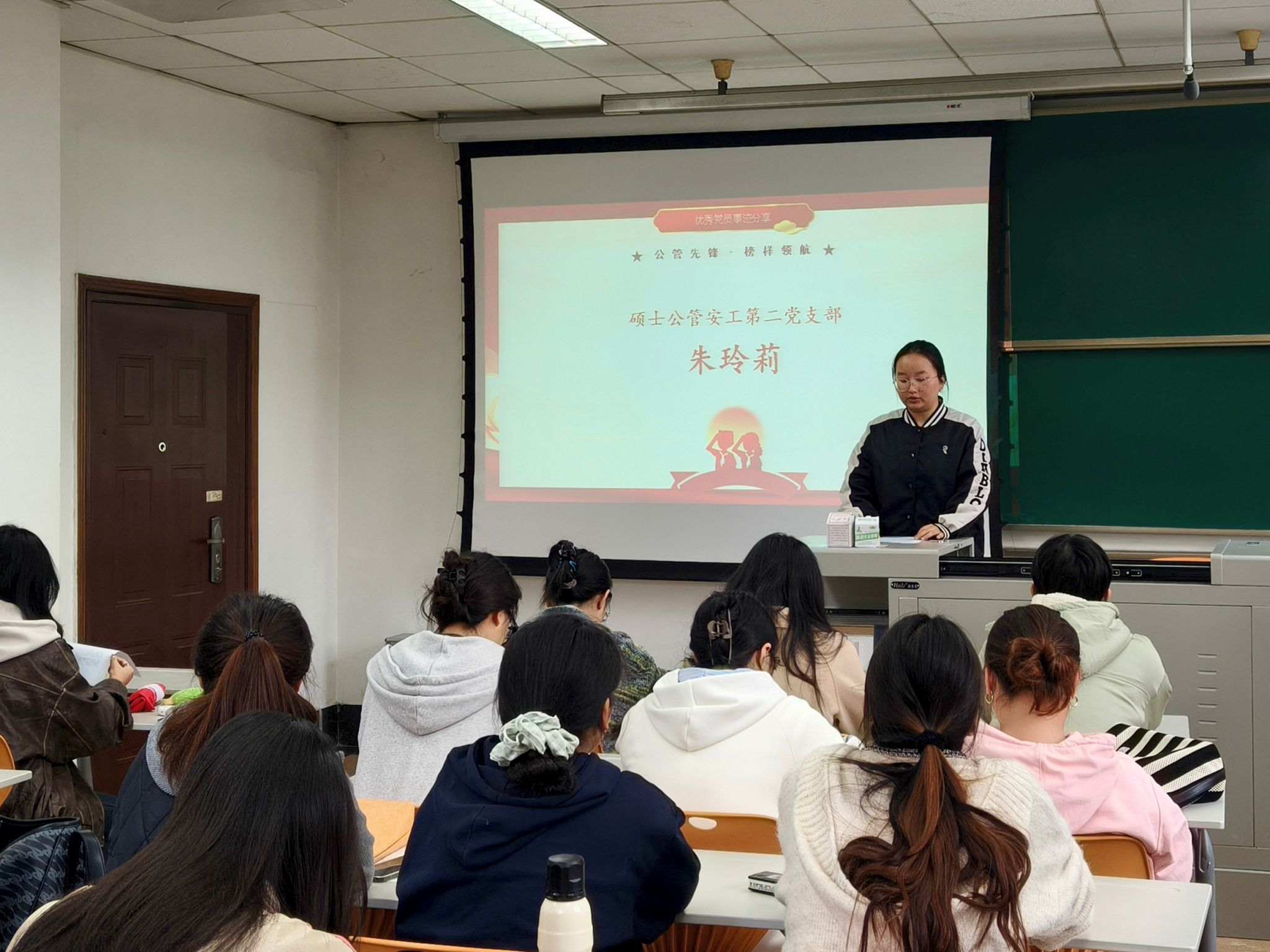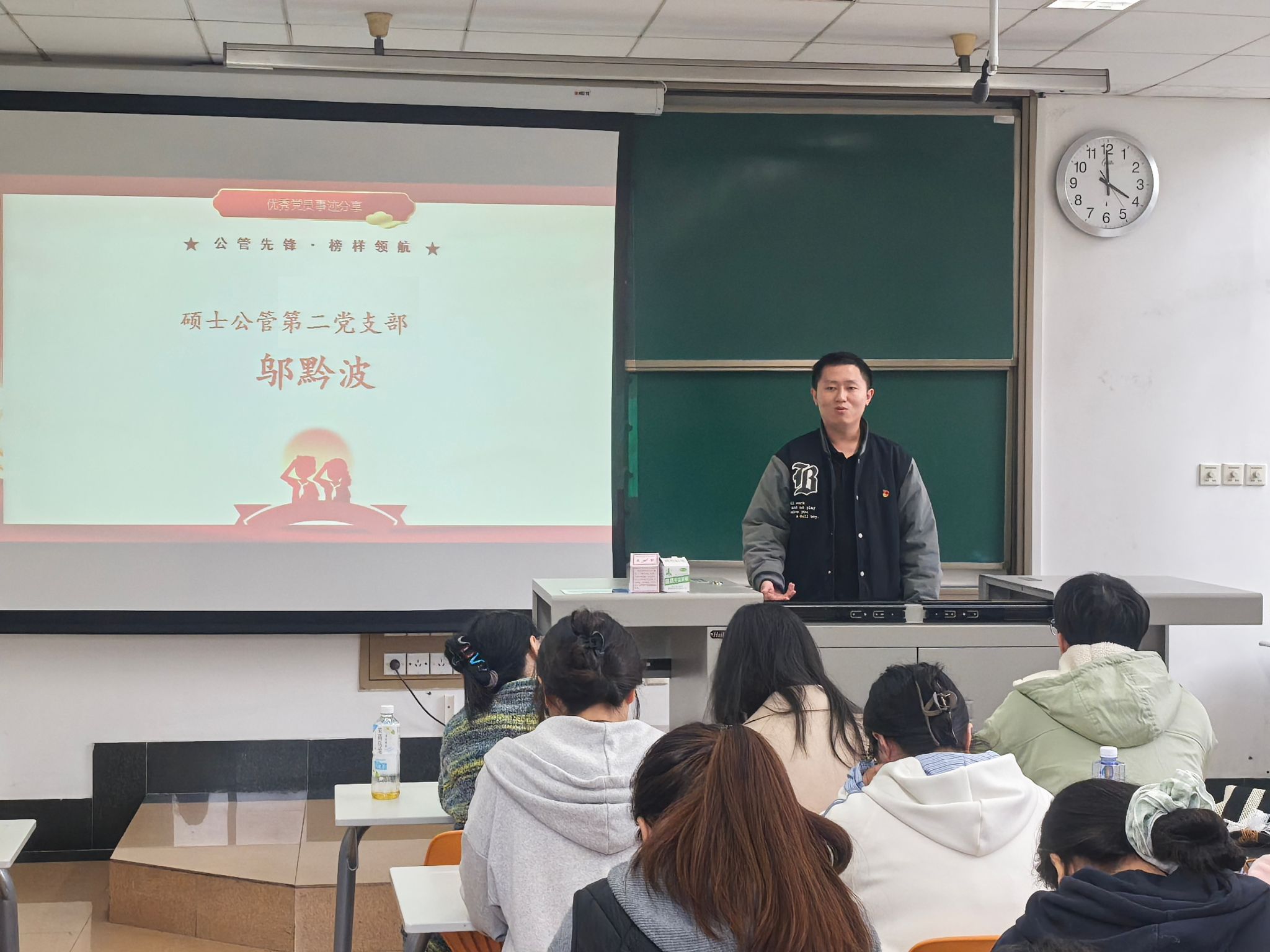 为深入学习贯彻习近平新时代中国特色社会主义思想,将伟大抗战精神转化为党员服务社会、担当作为的实际行动,2025年11月7日,suncitygroup太阳新城官网硕士公管及硕士公管安工第二党支部以“公管先锋・榜样领航”为主题举办优秀党员事迹分享会。本次分享会是“弘扬伟大抗战精神 汇聚青春奋进力量”校级示范性学生党支部特色支持活动之一,活动邀请了suncitygroup太阳新城官网博士研究生朱玲莉,硕士公管第二党支部书记、suncitygroup太阳新城官网第26届研支团成员师莉雅,硕士公管第二党支部纪检委员、退伍士兵邬黔波三位优秀党员代表,结合自身实践经历分享成长感悟,为全体党员送上了一堂生动鲜活的初心党课。