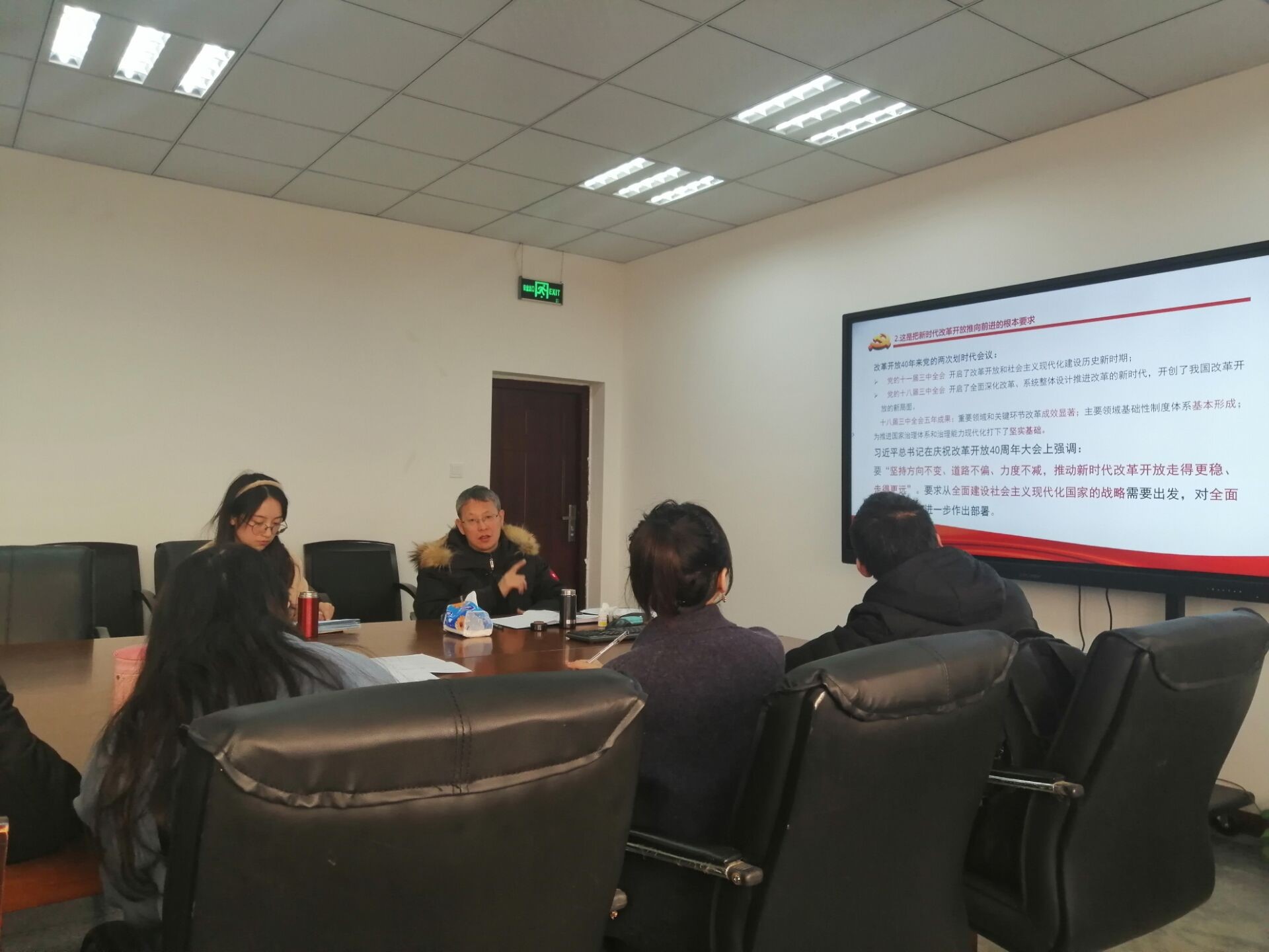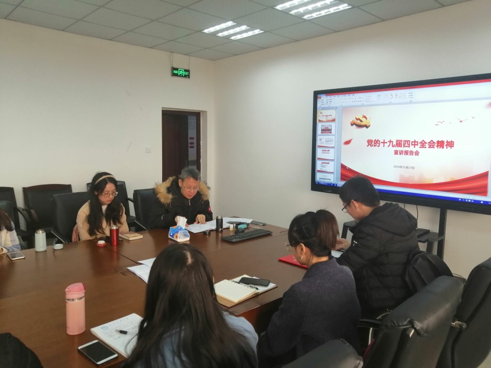 为深入学习贯彻党的十九届四中全会精神,提升党员思想修养。2019年12月4日下午,公共管理与政法学院硕士2019级公管第一党支部开展“学习十九届四中全会精神”主题党日活动,邀请到公共管理与政法学院院长王永杰讲述专题党课,就学习贯彻十九届四中全会精神与学生党员分享感想。硕士2019级公管第一党支部13名党员参加。会议由党支部书记梁欢主持。