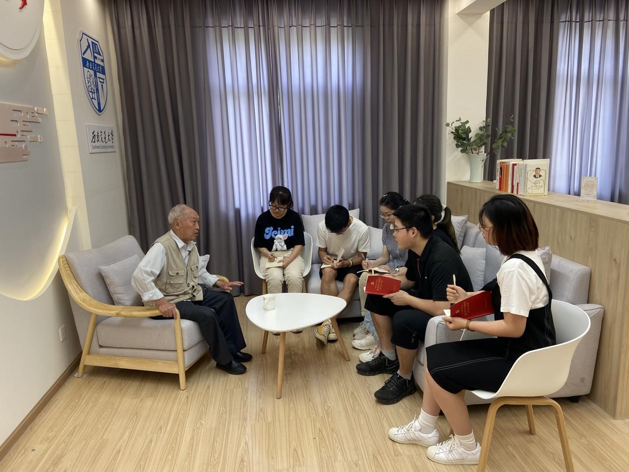 2021年6月10日,suncitygroup太阳新城官网、党委学生工作部和党委老干部部联合举办的党史学习教育专题活动“跨跃50年的对话——老党员给新党员的一堂特殊党课”第一期顺利举办。本次活动邀请到已有近60年党龄的交大退休教职工伍贤楷老师,与suncitygroup太阳新城官网的6名发展对象进行面对面的对话交流。
