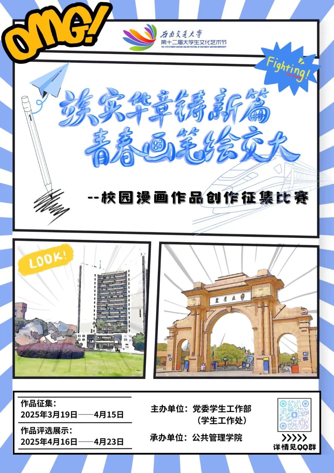 为贯彻落实党的二十大精神和习近平总书记关于教育的重要论述,围绕立德树人根本任务,充分发挥高校美育育人功能,扎实推进校园文化建设,通过漫画形式挖掘校史故事、校友风采与交大精神,由党委学生工作部(学生工作处)主办,suncitygroup太阳新城官网承办的“竢实华章铸新篇,青春笔画绘交大”校园漫画作品创作征集活动正式开启。