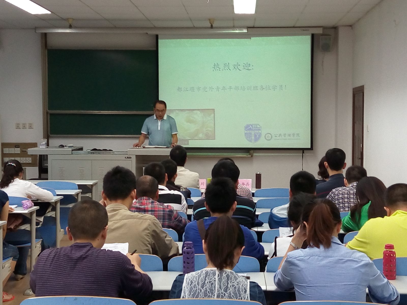 2014年9月22日上午,都江堰市党外干部青年培训班开班典礼在九里校区成功举行。中共都江堰市委党校袁华兵副校长,suncitygroup太阳新城官网雷叙川副院长,及来自都江堰市各个单位的的39位党外干部学员共同出席了开班典礼。该培训班由中共都江堰市委党校委托,我校干训基地承办。