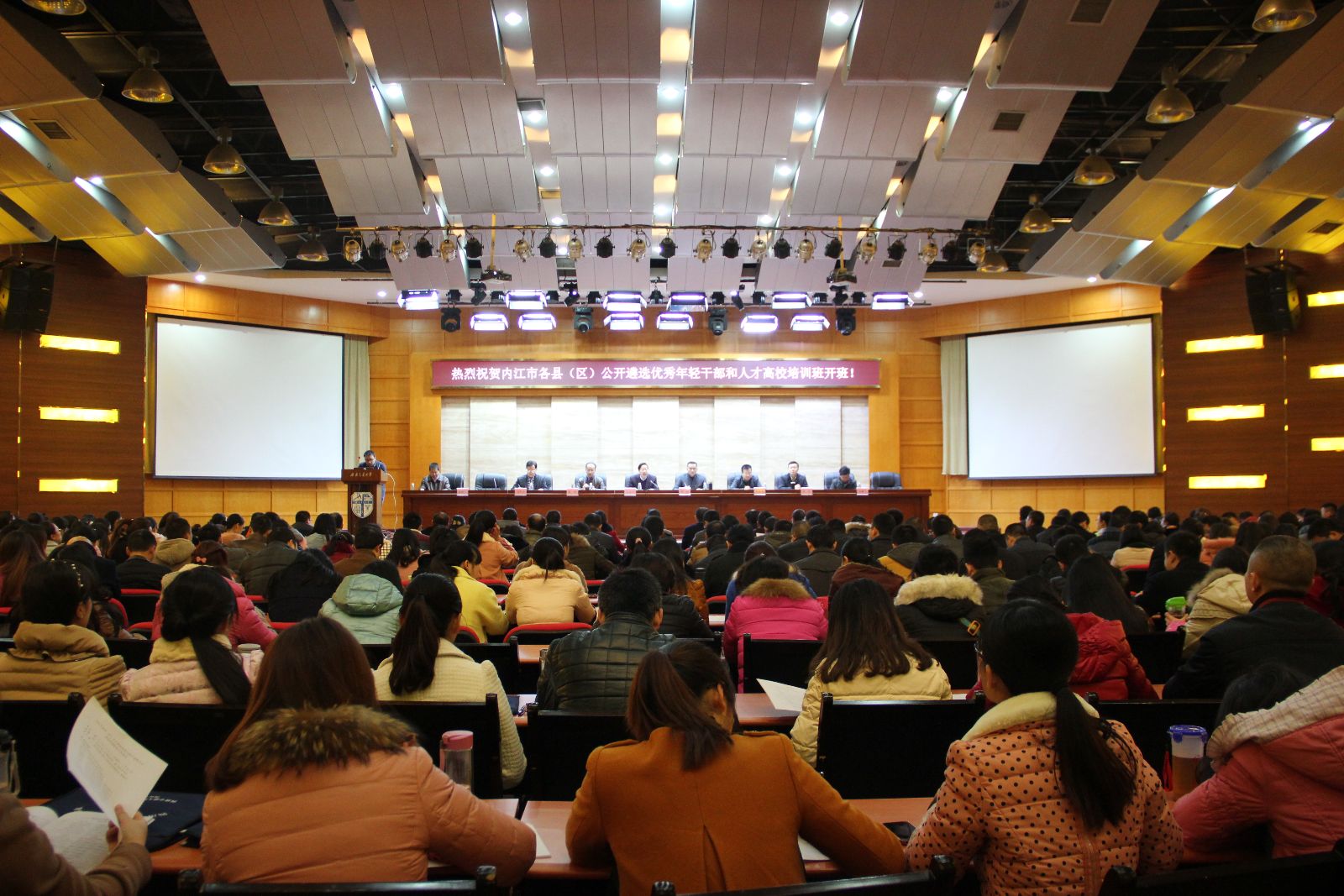 2014年12月11日,受内江市各县(区)组织部委托,内江市各县(区)党校主办,我校干训基地承办的“内江市各县(区)公开遴选优秀年轻干部和人才高校培训班在我校顺利开班。suncitygroup太阳新城官网党委组织部部长沈火明,suncitygroup太阳新城官网院长陈光,副院长雷叙川,中共内江市东兴区委常委、组织部部长封武,中共内江市资中县委常委、组织部部长黄焕燃,中共内江市隆昌县委常委、组织部部长刘学兵,中共内江市威远县委常委、组织部部长李杜,中共内江市委派驻市中区委副县级组织员、市中区委组织部常务副部长、人才办主任段鹏飞及来自内江市各区县各级党政机关的410余名参训学员共同出席了开班典礼。