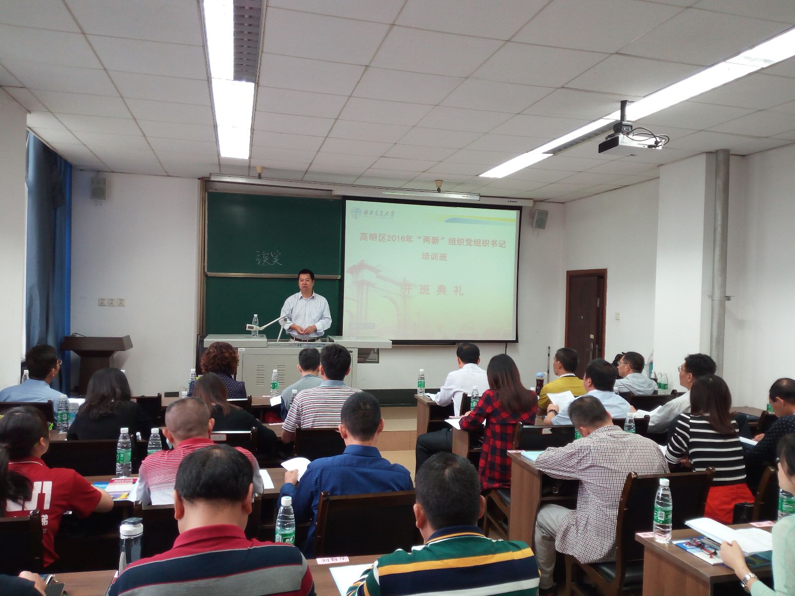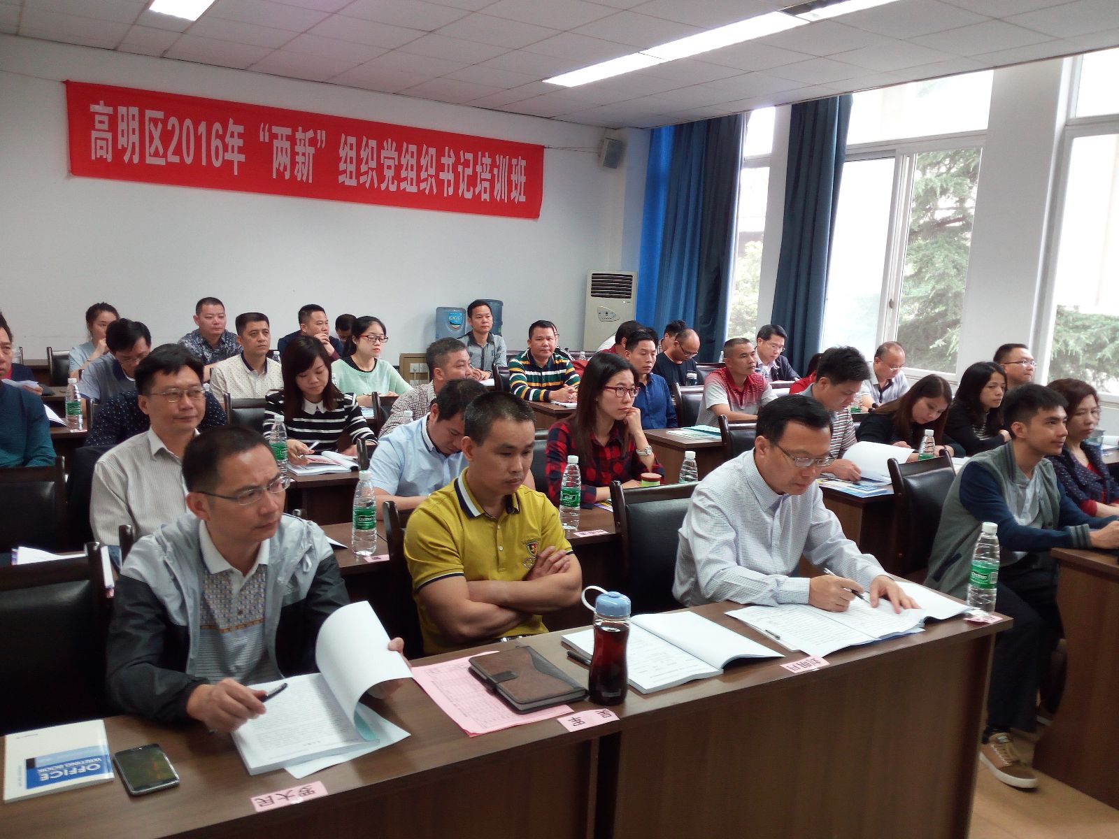 2016年5月23日,由我校干训基地承办的佛山市高明区2016年“两新”组织党组织书记培训班在我校顺利开班。suncitygroup太阳新城官网公共管理与政法学院副院长雷叙川,中共佛山市高明区委组织部副部长、“两新”组织党工委书记杨智聪,“两新”组织党工委副书记刘明月及来自佛山市高明区非公企业党委、党支部的40名参训学员共同出席了开班典礼。