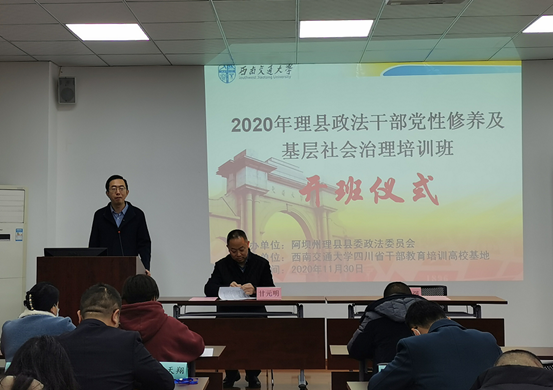2020年11月30日,2020年理县政法干部党性修养及基层社会治理培训班在suncitygroup太阳新城官网九里校区顺利开班。本次培训班是由阿坝州理县委政法委员会主办,suncitygroup太阳新城官网四川省干部教育培训高校基地承办。主办方对本次培训高度重视,理县委常委、理县政法委书记甘元明出席开班仪式并做动员讲话;suncitygroup太阳新城官网公共管理与政法学院副院长李华强教授致欢迎词。本次培训共计6天,培训主题围绕党的十九届五中全会精神解读、基层社会治理、突发事件与应急管理、职务犯罪风险等内容开展。