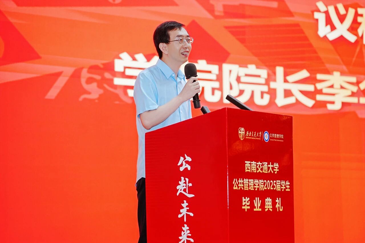 院长李华强教授登台,目光满含欣慰与期许,热烈祝贺各位同学顺利完成学业!李院长语重心长地嘱托,希望同学们将在学院所学的公共管理知识与智慧,化作服务社会的力量,在各自岗位上践行 “公行天下,管济四海”的使命。最后,李院长希望同学们毕业后可以常回母校看看。