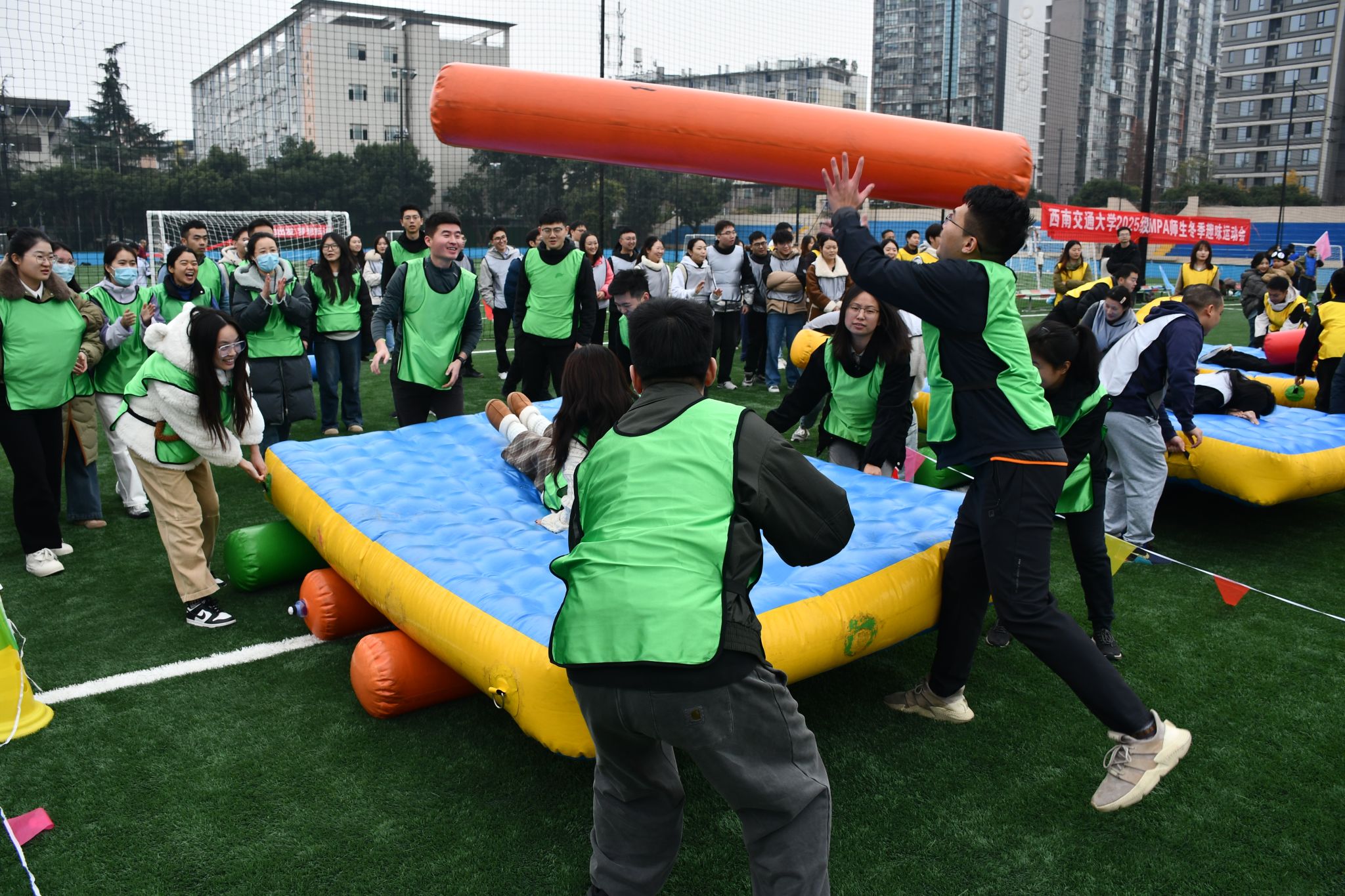 凛冬虽至,暖意盈怀。12月6日下午,suncitygroup太阳新城官网2025级MPA师生冬季趣味运动会在九里校区足球场拉开帷幕。尽管寒意袭人,师生们的参与热情却愈发高涨,这场融合了趣味、协作与互动的运动盛会,在冬日的校园里点燃了活力,也奏响了团结拼搏的青春乐章。