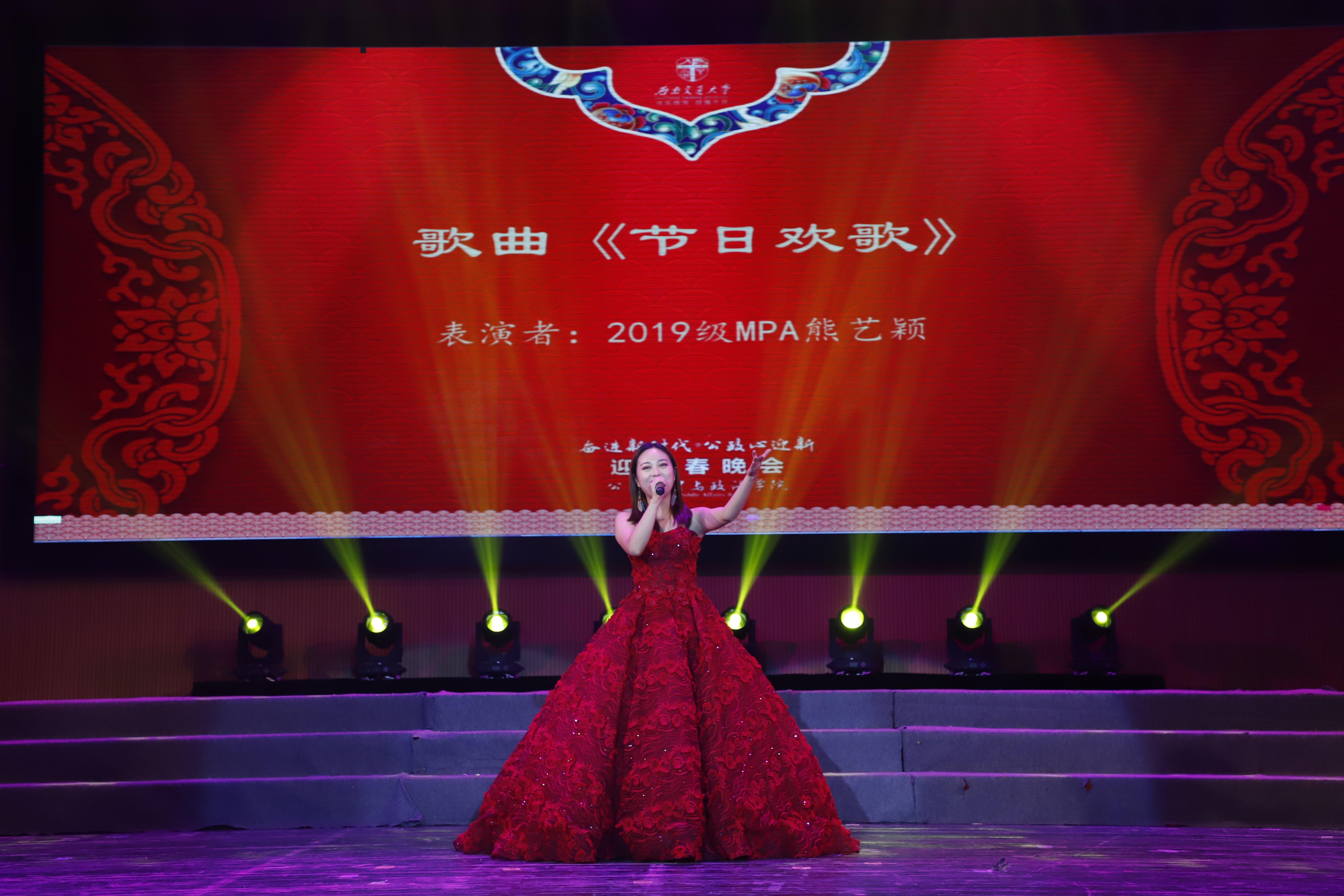 2019级MPA的熊艺颖同学用优雅、美妙的声音为我们带来了余音缭绕的《节日欢歌》。