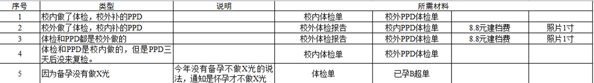 根据校医院对新生体检的统一要求,中心通过对部分同学提交的相关材料和迎新系统中体检环节情况的比对,将体检未完成的同学分为了以下五类。