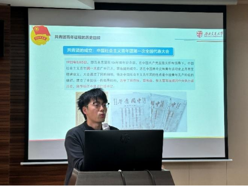 看似寻常最奇崛,成如容易却艰辛。庄严的宣誓后,suncitygroup太阳新城官网团委书记、青年讲师团成员莫太林老师开始了本学期团委书记专题团课暨“青马工程”的第一次授课。本次课程主要围绕团史学习与青年发展的主题,进行了中国共产主义青年团的光荣历史及高校学生团支部建设专题培训。首先,莫太林老师带领学员们回顾了共青团百余年征程的历史,1922年诞生的共青团因为种种历史原因名字几经变更,最后确定为“中国共产主义青年团”。尽管共青团有过多个名字,但它们都共同承载着青年一代的理想抱负和对国家建设的热情。大江流日夜,慷慨歌未央,在深入地了解了共青团的发展征程后,学员们更加坚定了共产主义信念,更加坚定了为实现全国人民的共同理想奋发进取建功立业的共青团精神。